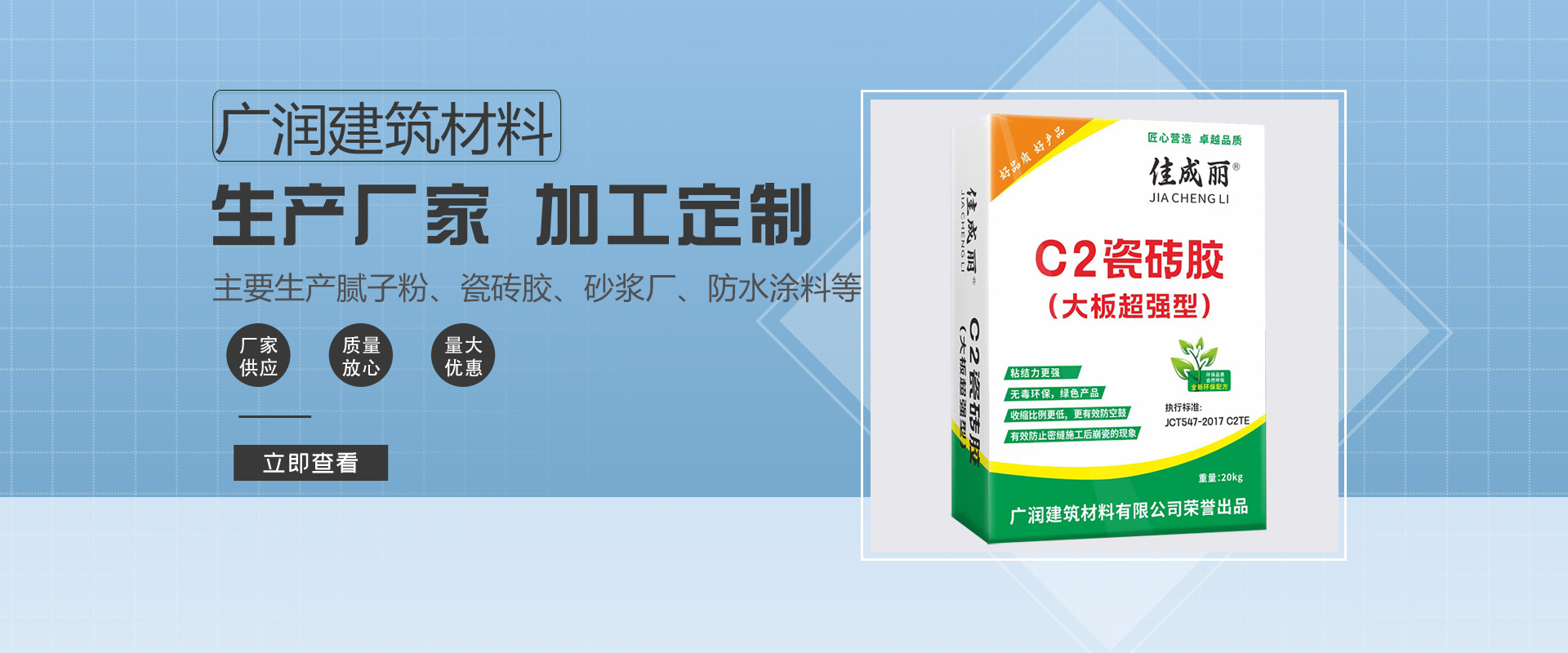 廣西廣潤建筑材料有限公司一直致力于高品質(zhì)的新型膩子的研制,已取得了多項科研成果。開發(fā)出一系列廣受市場歡迎的涂料產(chǎn)品,集研發(fā)、生產(chǎn)、銷售于一體的建筑材料制造企業(yè)。廣西廣潤建筑材料有限公司會聚了具豐富經(jīng)驗的專業(yè)技術(shù)人才及高素質(zhì)的管理隊伍。主要從事生產(chǎn),水性環(huán)保鋼化膩子粉,外墻彈性、柔性、抗裂型膩子粉、內(nèi)墻防水膩子粉等中高檔建材產(chǎn)品。廣西廣潤建筑材料有限公司開業(yè)至今,本著“求實、進取、信譽為本、客戶至上”的宗旨,積極開拓業(yè)務(wù),取得了優(yōu)異成績,……